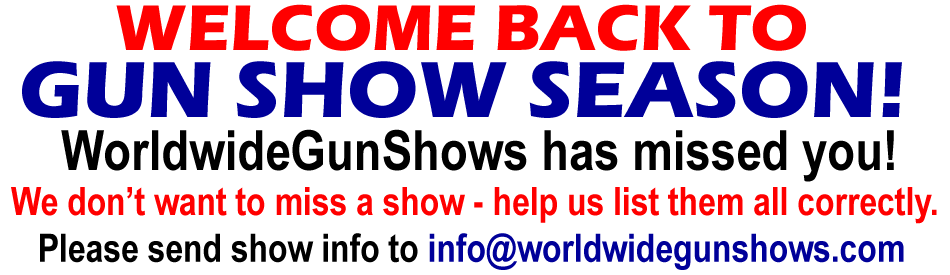 While the information shown on this website is believed to be accurate - sometimes changes occur. This website is provided for informational purposes only. We are not responsible for any actual gun show events, we are not responsible for shows being cancelled or rescheduled, we are not responsible for any loss that may occur as the result of attending or not attending an event.
